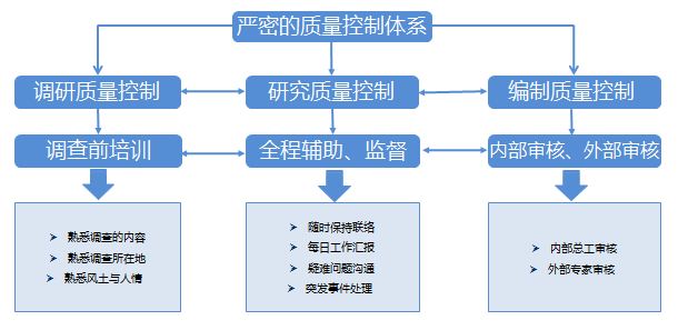 嚴密的質量控制體系:從調研、研究到撰寫,多次審核和質疑,往復核實,確保項目質量;目前擁有一批經驗豐富的規(guī)劃師及分析師